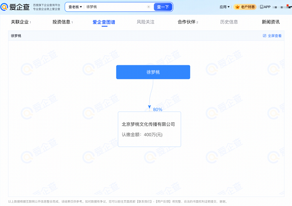 爱企查App显示,徐梦桃关联企业——北京梦桃文化传播有限公司成立于2022年10月,注册资本500万元,经营范围含组织文化艺术交流、体育赛事策划、广告发布等。知识产权信息显示,该公司已申请包括“徐梦桃”在内等53项商标。