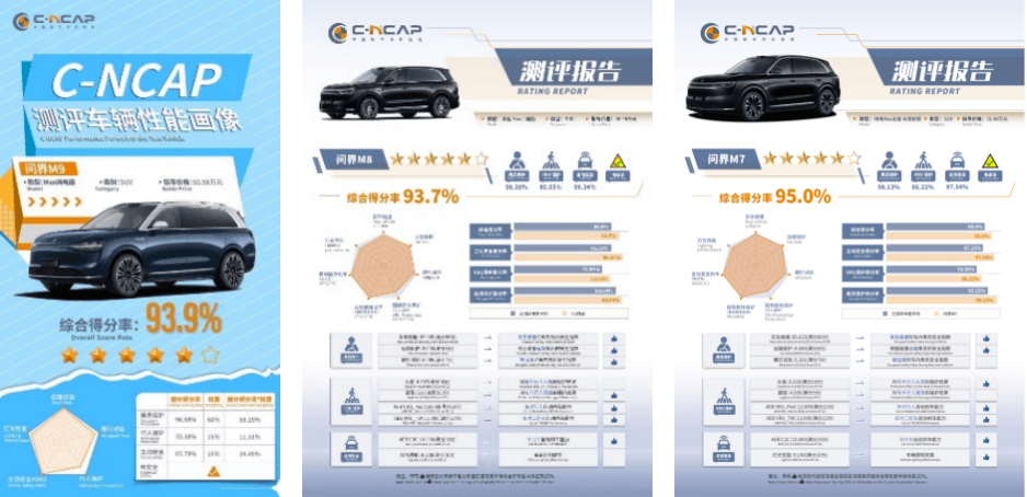 问界M9\M8\M7CNCAP五星+测评成绩认证